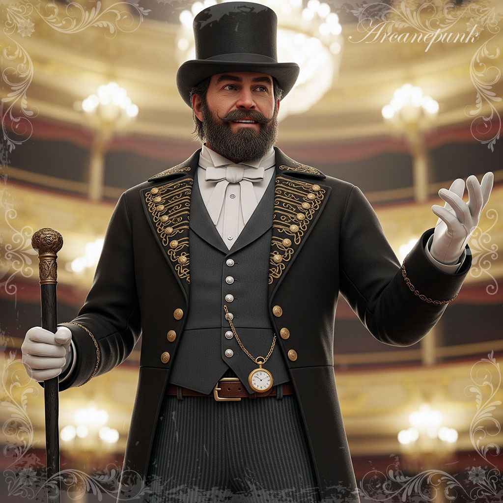 Alvin Gebrilsson, a man of distinguished mien and considerable influence, commands a vast empire of factories throughout Fergeria. Clad in an elegant, dark frock coat, waistcoat, and top hat, a gleaming cane clutched in hand, he exudes an aura of immense wealth and conservative refinement. His meticulously trimmed beard and mustache, coupled with a grave expression, betray the acumen of a businessman adept at wielding capital. Yet, beneath this facade of pragmatism and civic engagement lies a deeply guarded secret: a silent, platonic devotion to Alexiroe Meringeux. After the ravages of war, Alvin undertook the financial stewardship of Edenlon’s opera house, becoming its principal patron, indeed, almost its sole proprietor.