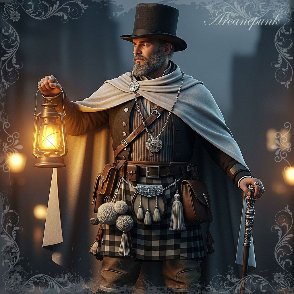 His attire is always impeccable yet practical. He favors well-tailored suits crafted from dark, durable fabrics like wool and tweed, often in shades of gray, brown, or deep green. A carefully tied tie and a waistcoat, from which the chain of his precise pocket watch descends, are constant elements of his ensemble. His only subtle adornments are small brass or copper details, a nod to mechanics and science. He is never extravagant; his elegance is classic and restrained, reflecting his pragmatic nature and unwavering focus on his work.